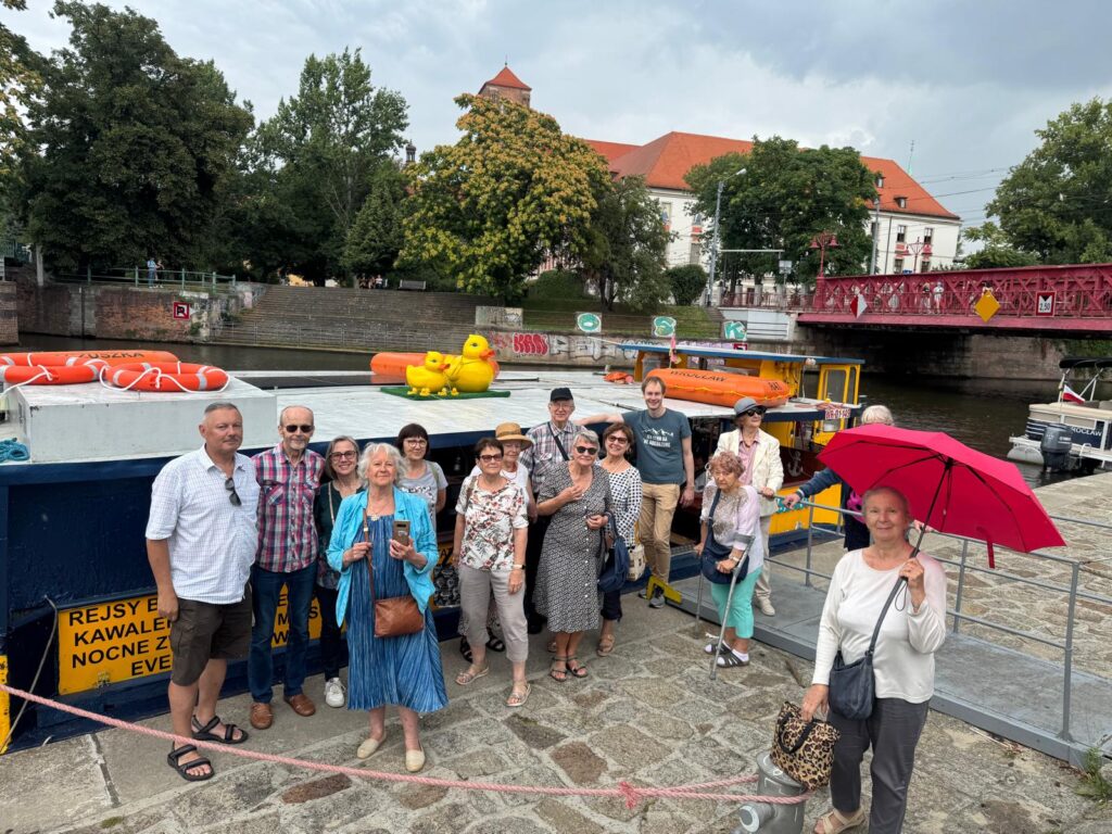 „To było piękne zakończenie całego kolejnego roku spotkań seniora w naszej parafii. Co prawda pogoda nie była najlepsza, jak można się w miesiącu lipcu spodziewać, bo zanosiło się na deszcz, ale podczas rejsu „Kaczuszką” po Odrze, to nie miało znaczenia. W końcu słoneczko i tak wyjrzało i było przyjemnie ciepło. Nawet grupa była spora w porównaniu z ostatnimi piątkami. Razem dojechaliśmy tramwajem do Muzeum Narodowego, a po dziesięciominutowym spacerze dotarliśmy do przystani. Blisko godzinny rejs przypomniał nam jaki piękny jest nasz Wrocław, jak się rozwija i jak się zmienia. Mogliśmy też zamienić kilka słów z osobami, z którymi tak często nie rozmawiamy. Pożegnaliśmy się z nadzieją spotkania we wrześniu, w następnym roku działalności Fundacji „Lumen Gentium”, za co z całego serca składamy serdeczne „Bóg zapłać”!”